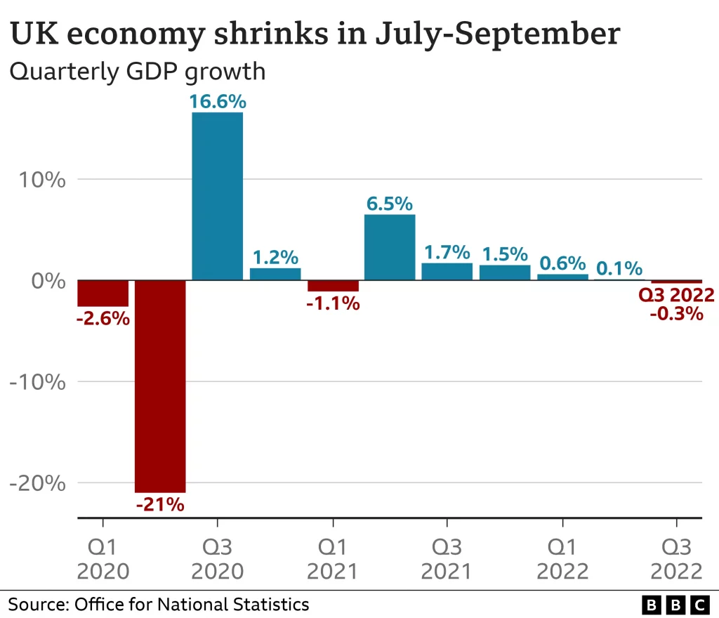 Because, by definition, a country is considered to be in recession when its Economy shrinks for two three-month periods or quarters in a row. So the British Economy shows clear signs that a recession is looming.